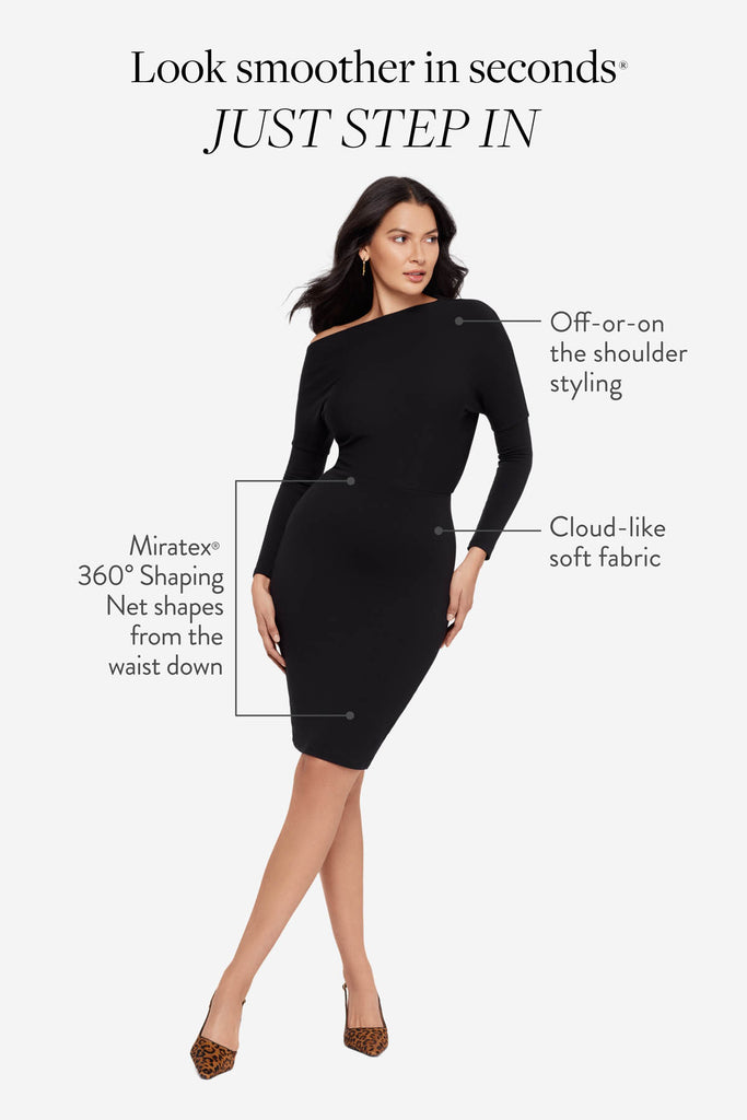 Powered by Miratex® 360° Shaping Net: invisible targeted compression for tummy, waist & thighs.