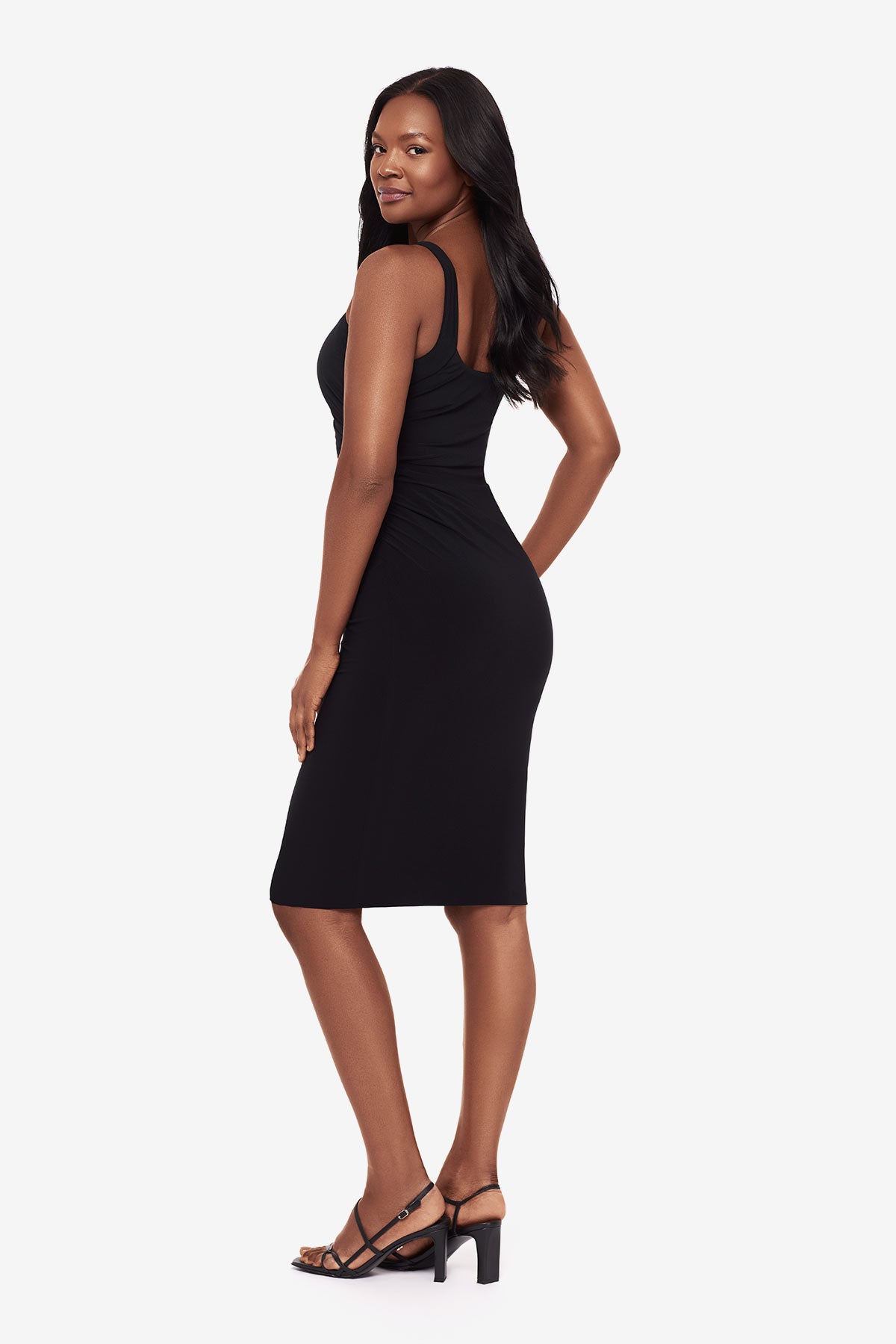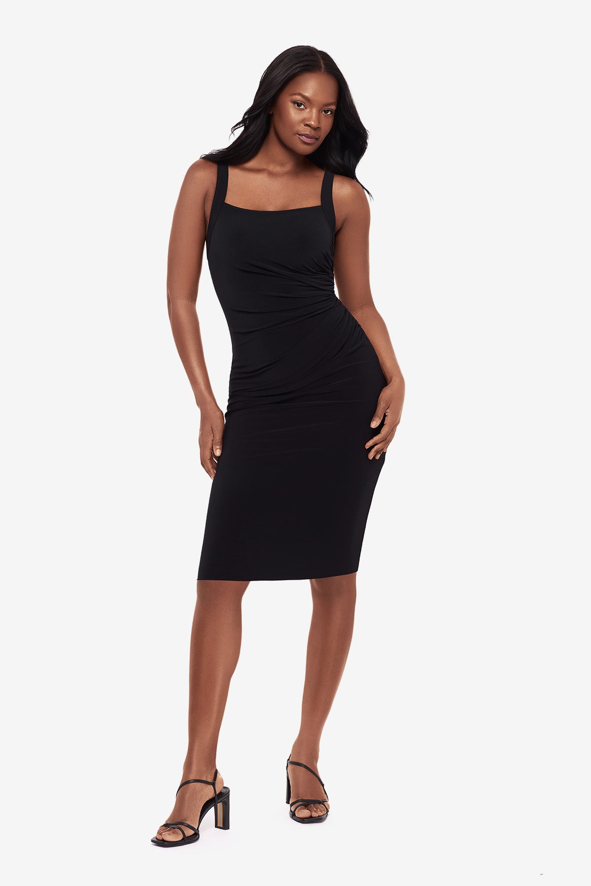 Strategically draped to flatter. Crafted in soft Miramatte™ Jersey that packs like a dream.
