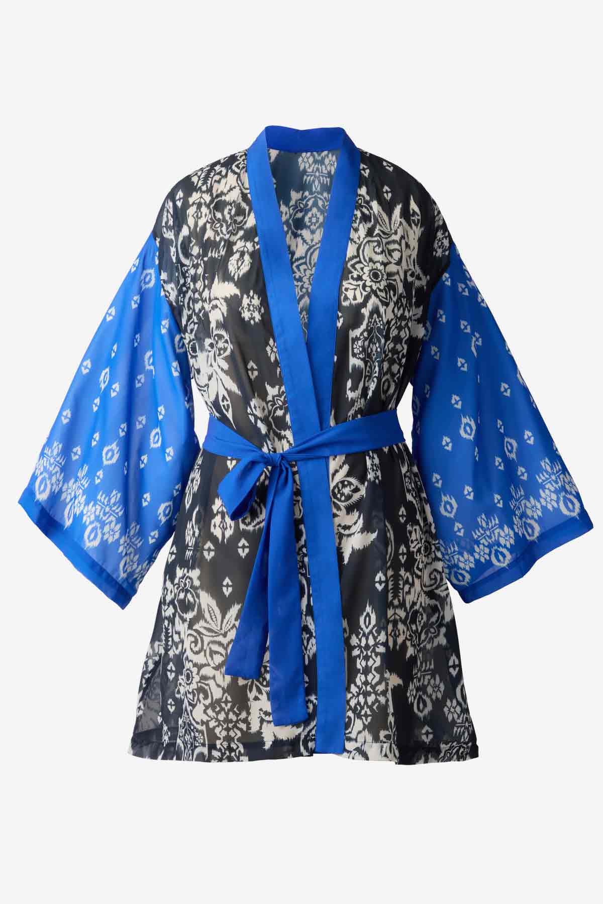 • Semi sheer georgette kimono with fixed belt