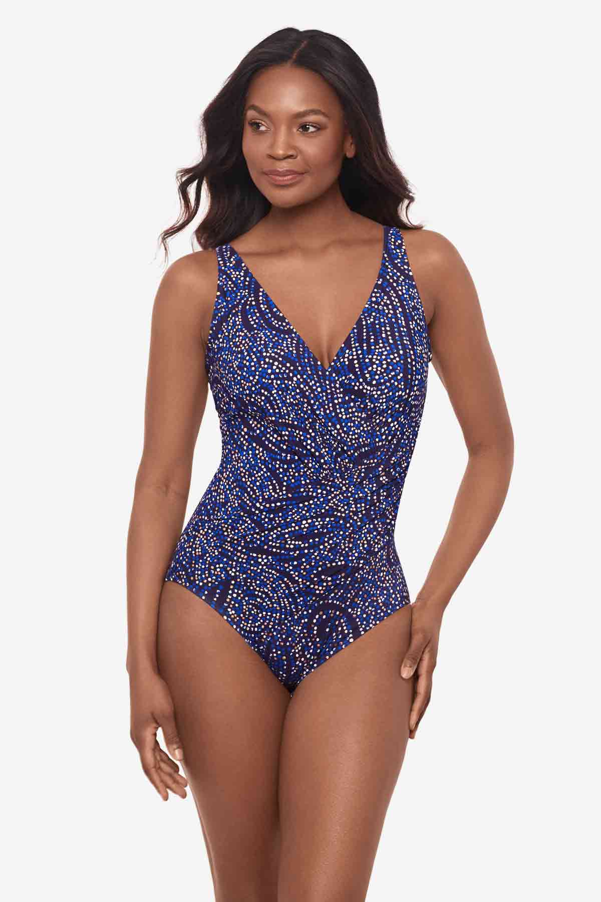 Miraclesuit Spotlight Oceanus One Piece Swimsuit #6566388 Wrapped to pure perfection, Miraclesuit offers a most distinct fit for your unique shape, combining comfortable control fabric that withstands any day in or out of the water. The only swimsuit that makes you look 10 pounds lighter in 10 seconds, Miraclesuit swimwear delivers fit, form, and function to show off your beautiful curves - and your confidence. Instantly create definition while accentuating your entire shape, get proper support where needed, and trim your all-over silhouette. Made with LYCRA® XTRA LIFE™ Spandex for a long lasting fit.