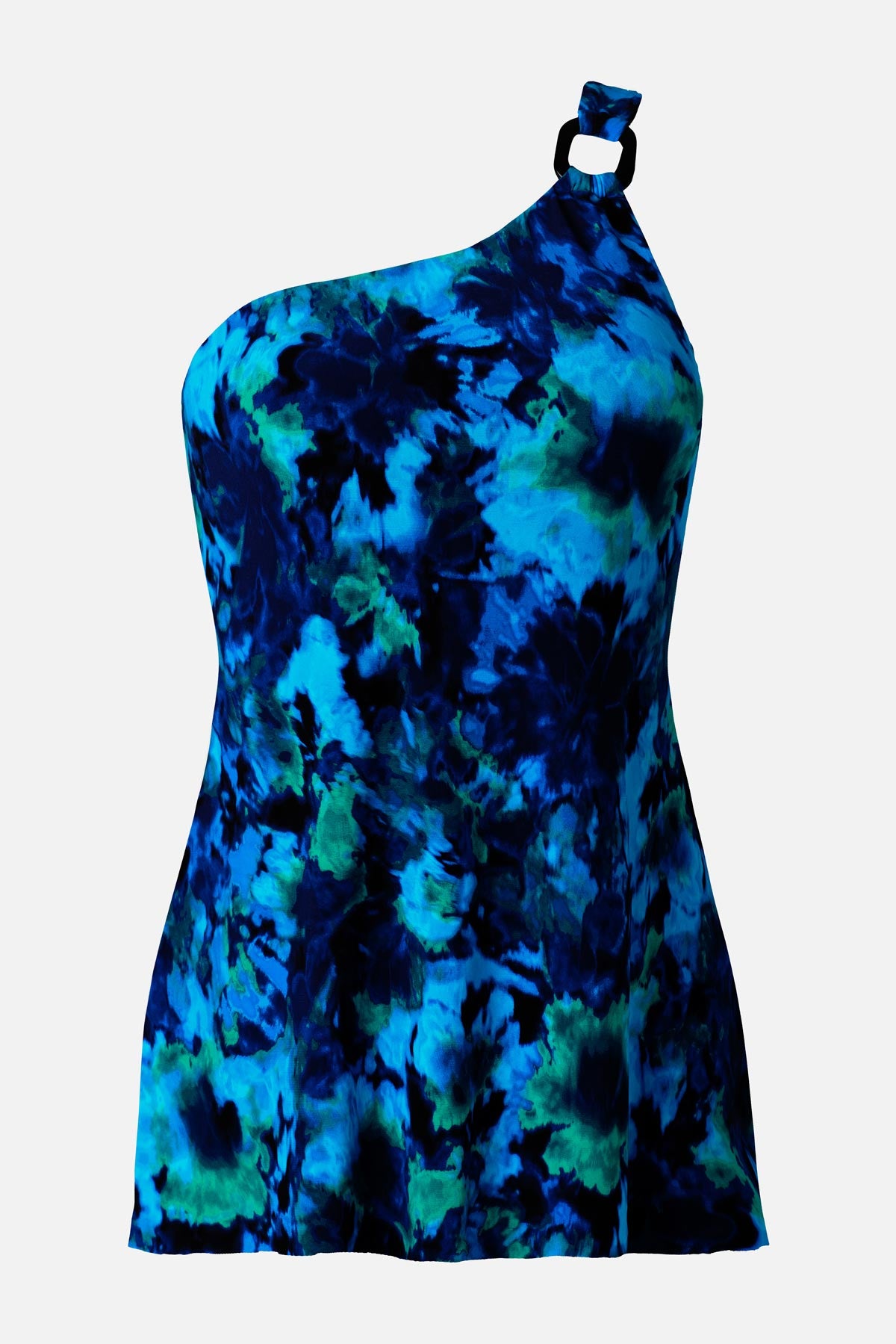Fluid blues and teals in an underwater floral with soft tie-dye diffusion perfectly set off a black background.