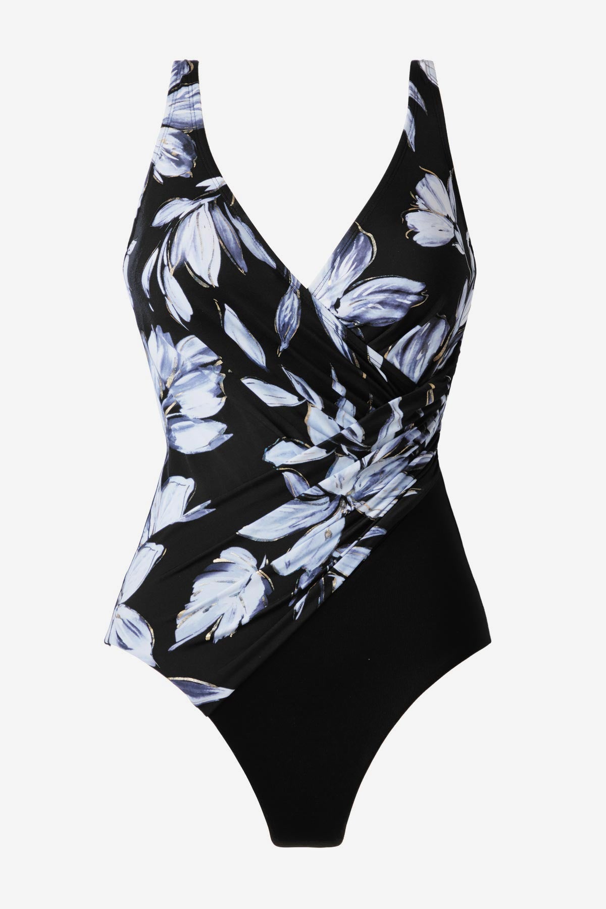 Draping through the front sculpts the waistline, while a hidden underwire bra and adjustable straps deliver extra lift and secure support, designed to flatter and comfortably fit DD+ cups. Clever draping smooths and conceals the tummy for a confident, sculpted silhouette.