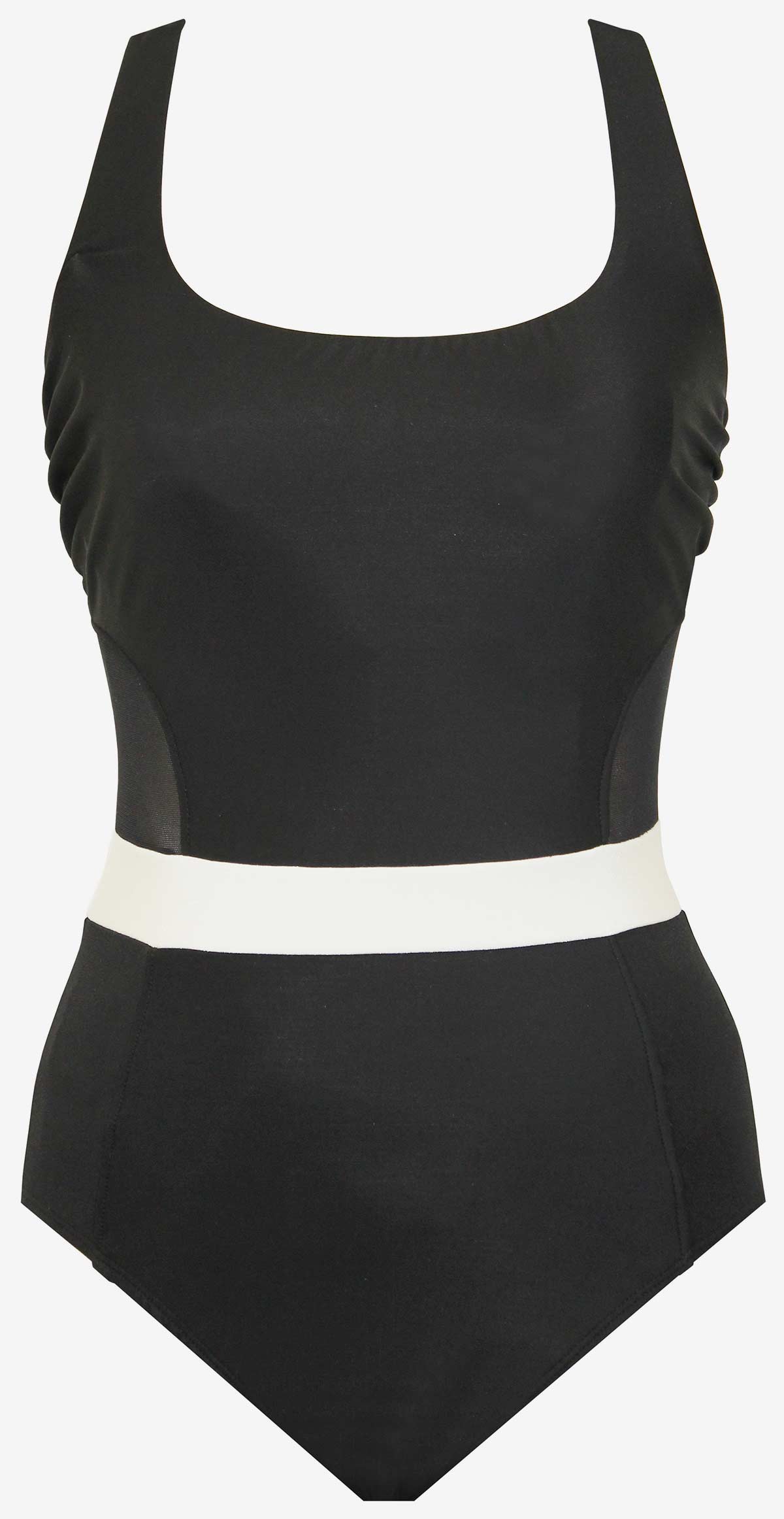 • Mesh insets at sides provide control while highlighting an hourglass effect