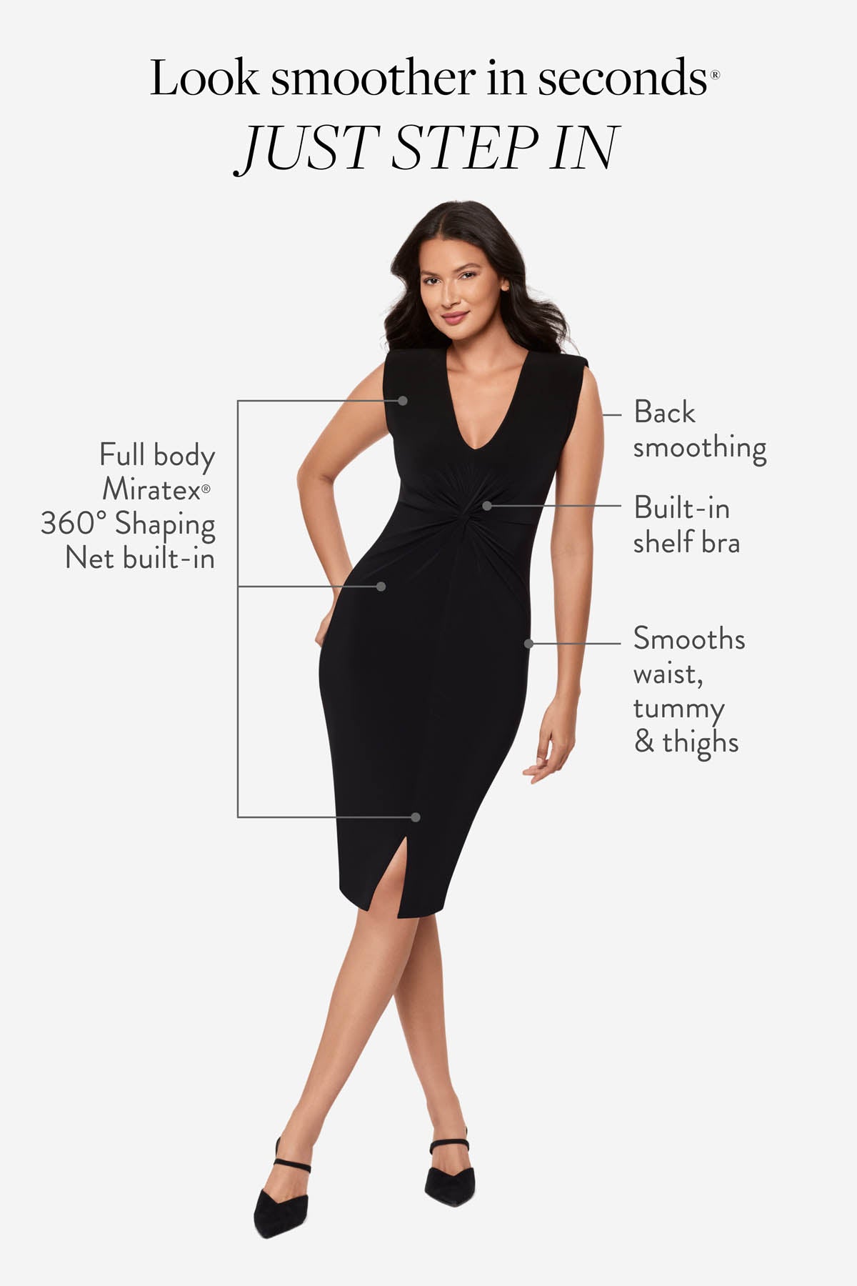 Style that sculpts. This dress smooths, cinches and transforms in seconds. Just step in.