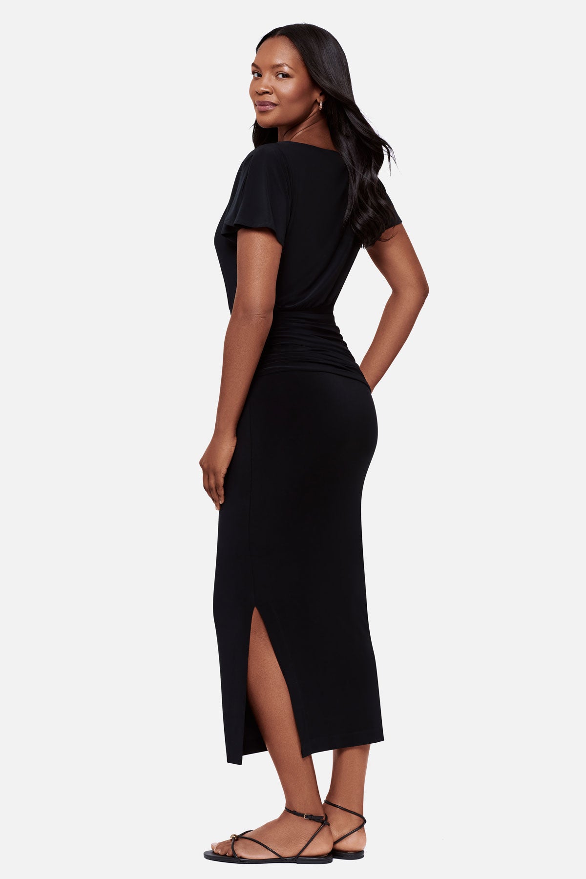 Strategically draped to flatter. Crafted in soft Miramatte™ Jersey that packs like a dream.