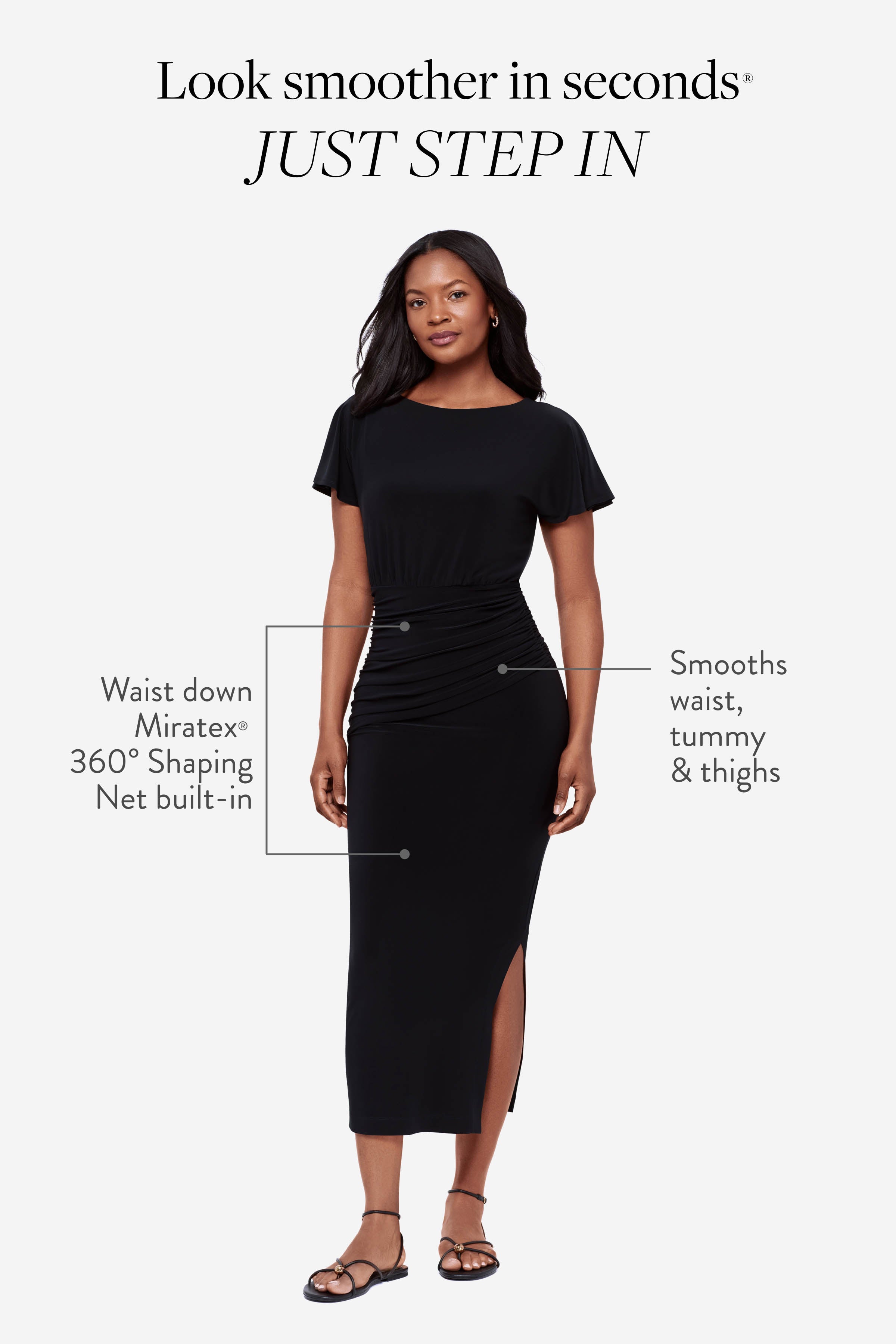 Powered by Miratex® 360° Shaping Net: invisible targeted compression for tummy, waist & thighs. Plus built-in bust support and back smoothing.