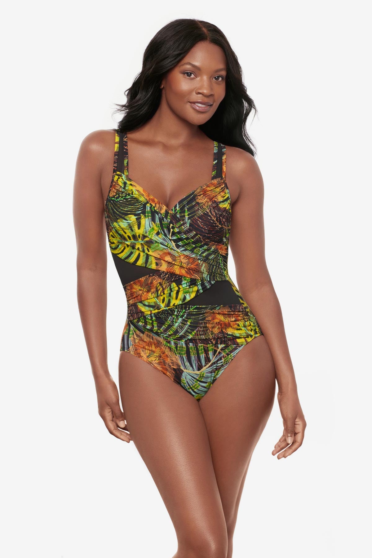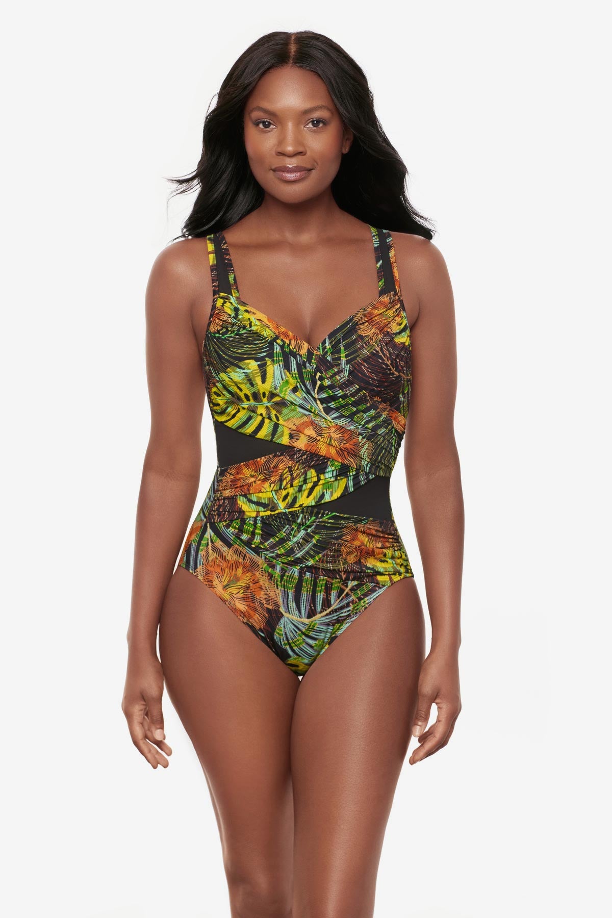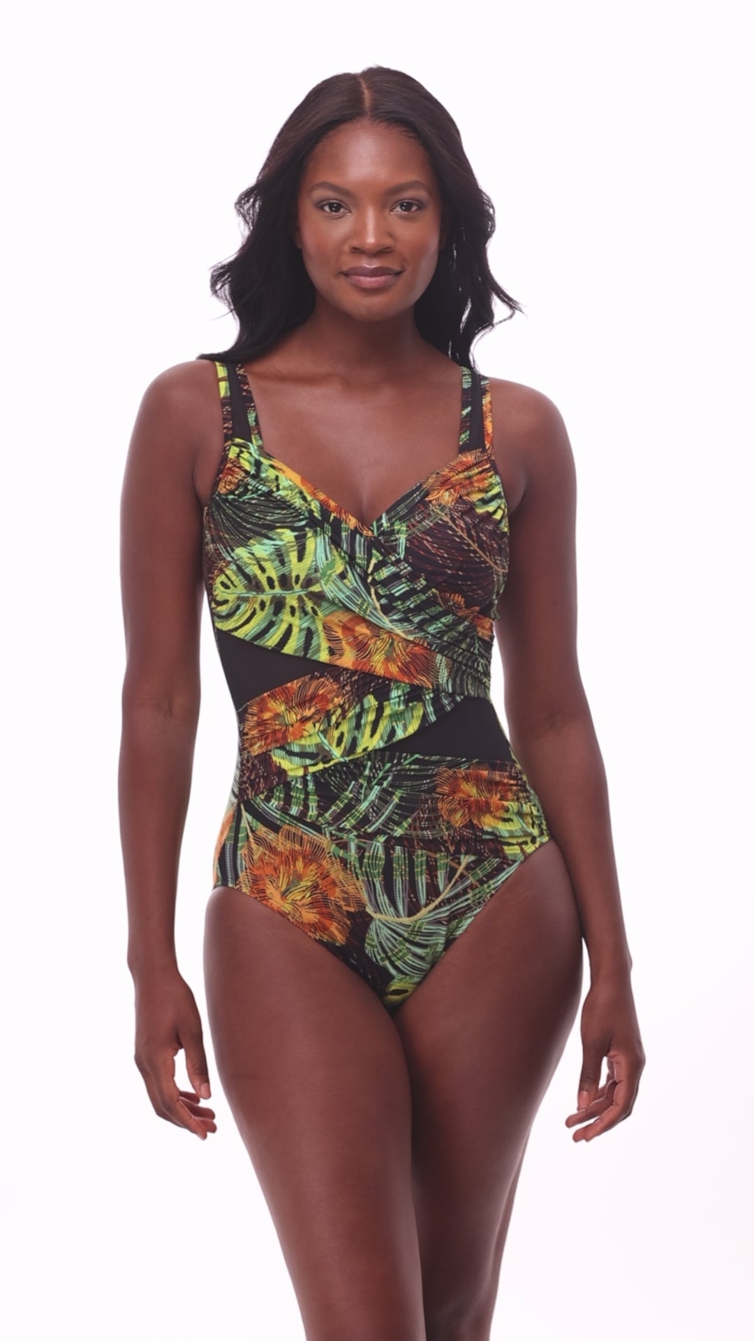 The Madero redefines mesh swimwear, with sculpting insets that contour your curves. Draped fabric panels across the front streamline your silhouette.